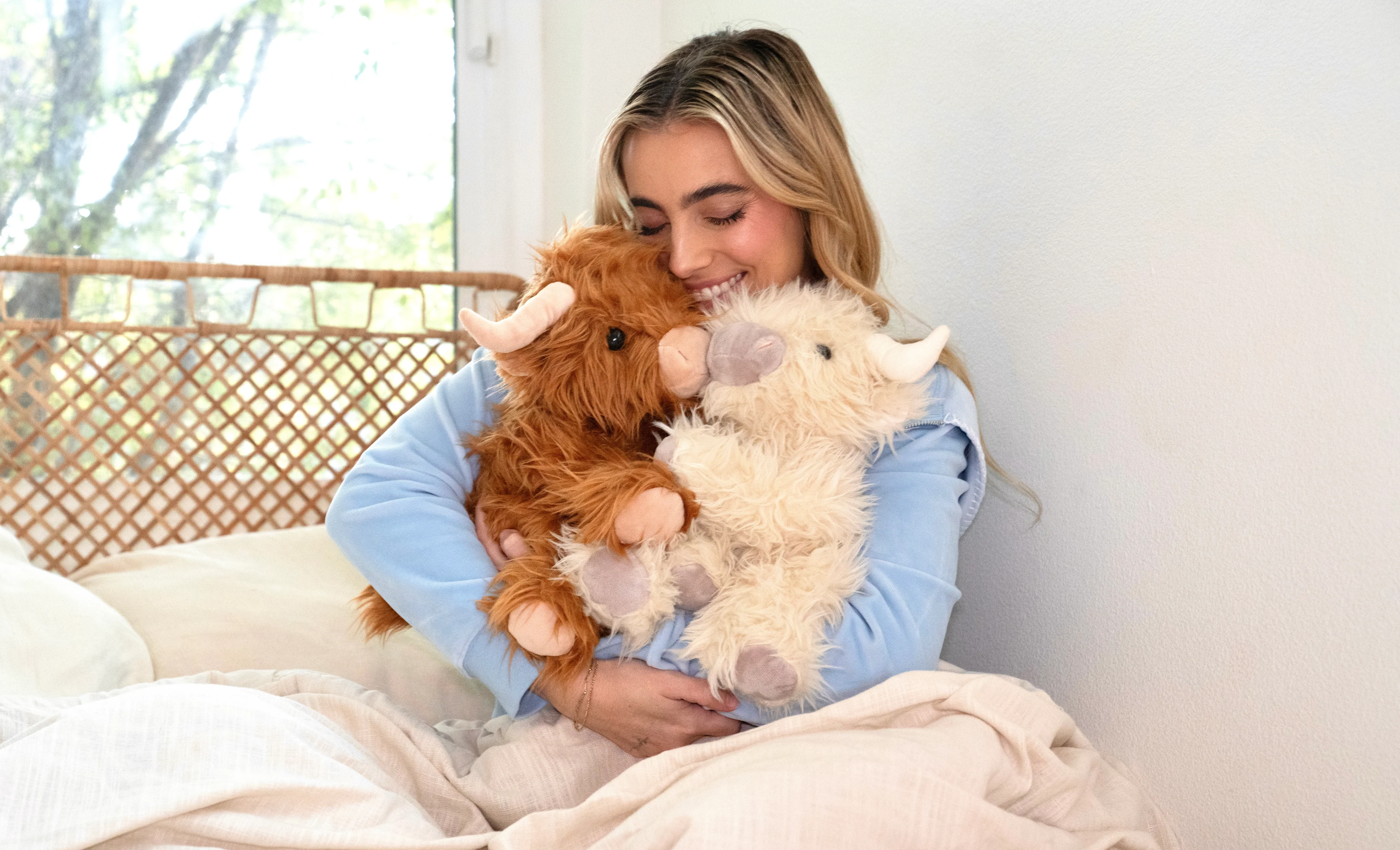 Meet Mini Scottie the Highland Cow! Don’t be fooled by his size—Mini Scottie brings big comfort in a smaller package. Weighing 2 pounds, this pocket-sized version of our beloved Scottie is just as soft, snuggly, and full of Highland heart. Whether you need a travel buddy, a desk companion, or a calming cuddle at bedtime, Mini Scottie is always ready to mooo-ve in and keep you comfy.